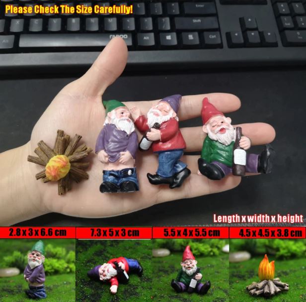 Geef je tuin een beetje humor met een van onze grappige Drunk Gnome Decoration™️. Deze hilarische tuinfiguren verbeelden een plassende kabouter, een dronken zittende kabouter, een dronken liggende kabouter, een vreugdevuur, en nog veel meer zullen schoonheid en charme toevoegen aan je tuin. Een perfecte decoratie niet alleen voor buiten, maar ook voor binnen. Ze zien er zo grappig uit in verschillende poses dat bijna iedereen met een gevoel voor humor zal lachen bij het zien van deze rare schattige kabouters.